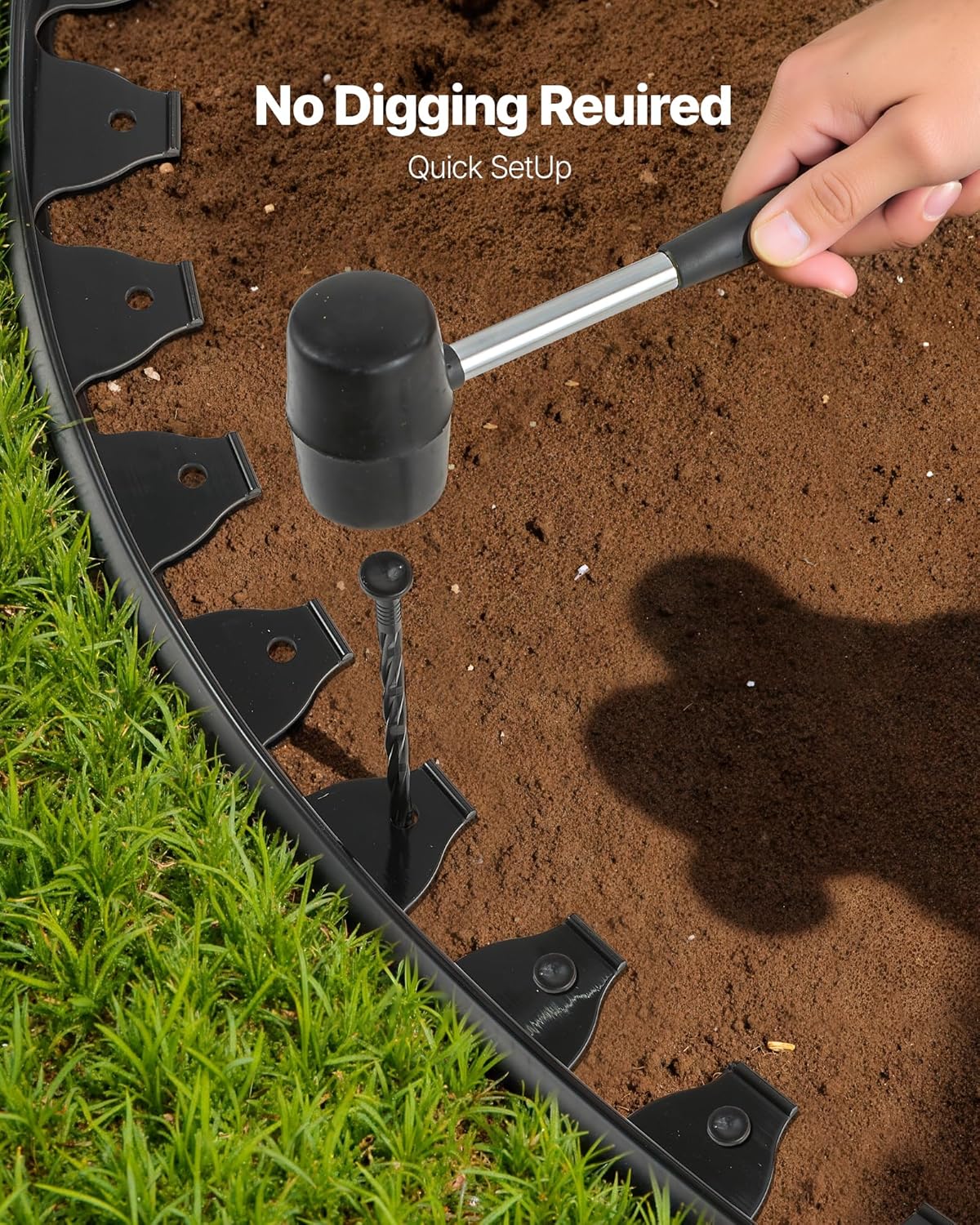 • Easy to Install: Lay the lawn edgings along the bed edge and hammer the included spikes through the holes—no digging or concrete needed. Panels easily overlap for straight or corner placement.