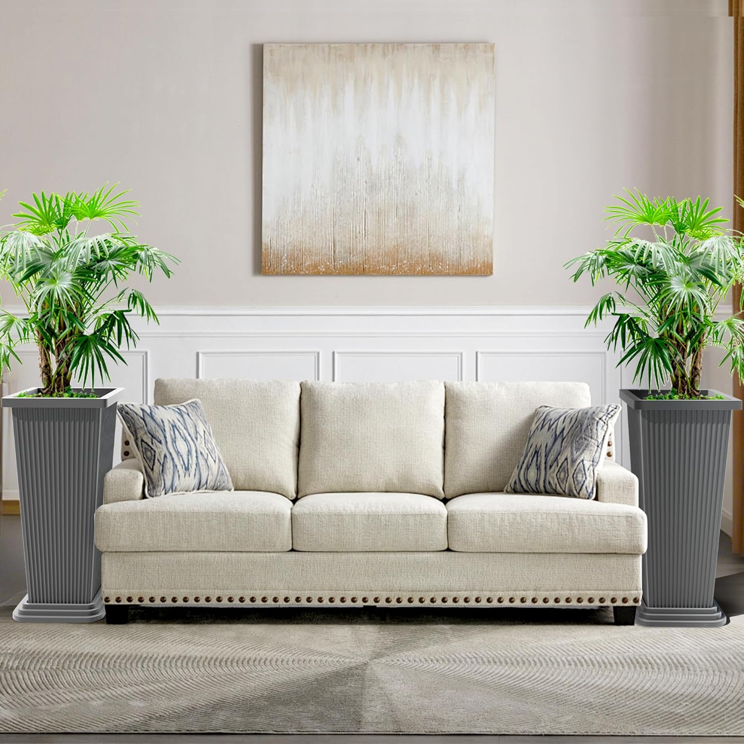 • Durable Yet Easy to Relocate: The tall planter is designed to remain stable and sturdy, even in harsh weather conditions. Whether used as part of your outdoor décor or indoors, they won’t tip over easily, making them a reliable choice for outdoor planters.