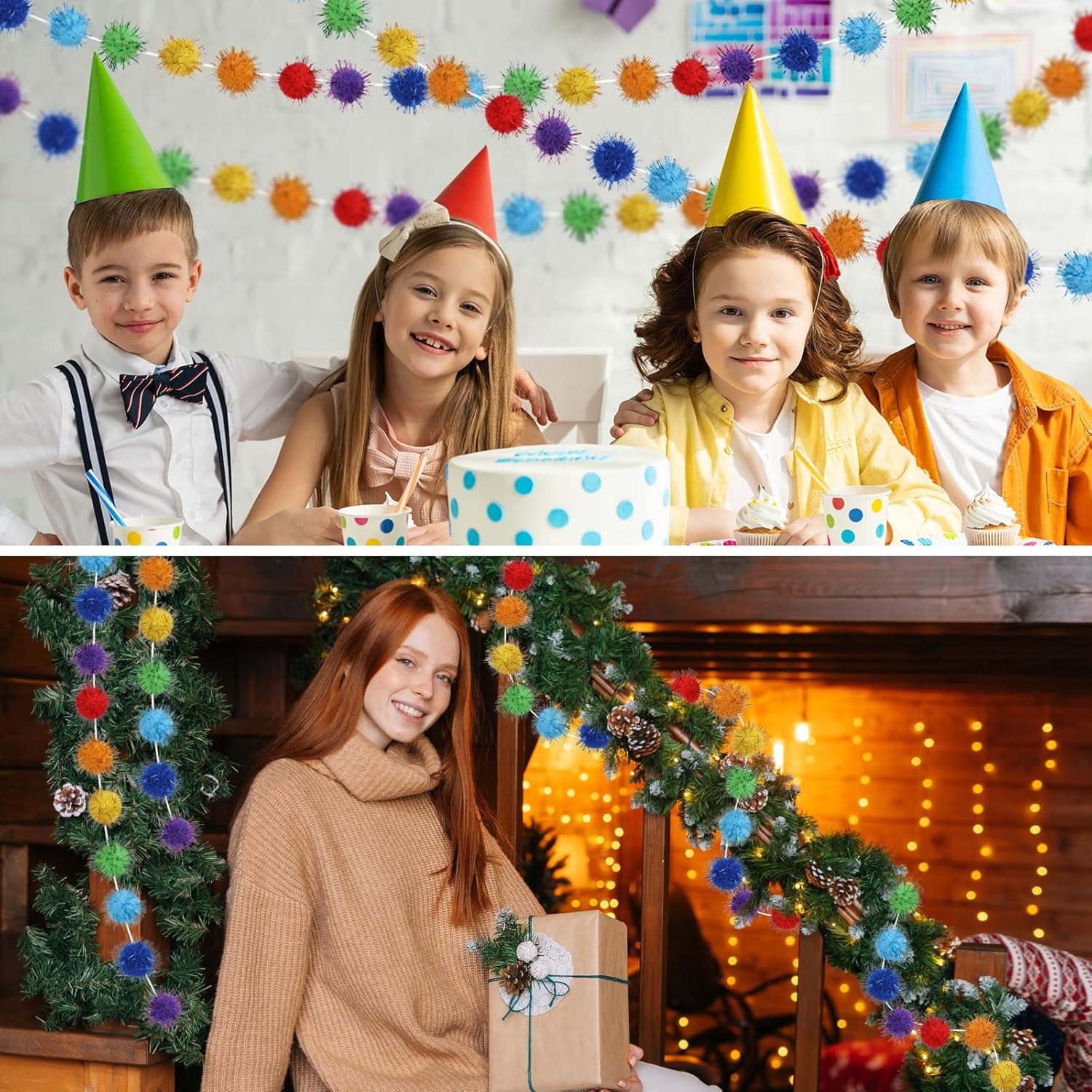 • Multi-Purpose: Our glitter pom pom garland is perfect for Easter, Thanksgiving, Christmas, spring, Mardi Gras, and other festive occasions, ideal for mantle, walls, home, classroom, play room, offices and parties. Designed for year-round versatility, these felt garlands work indoors and out!