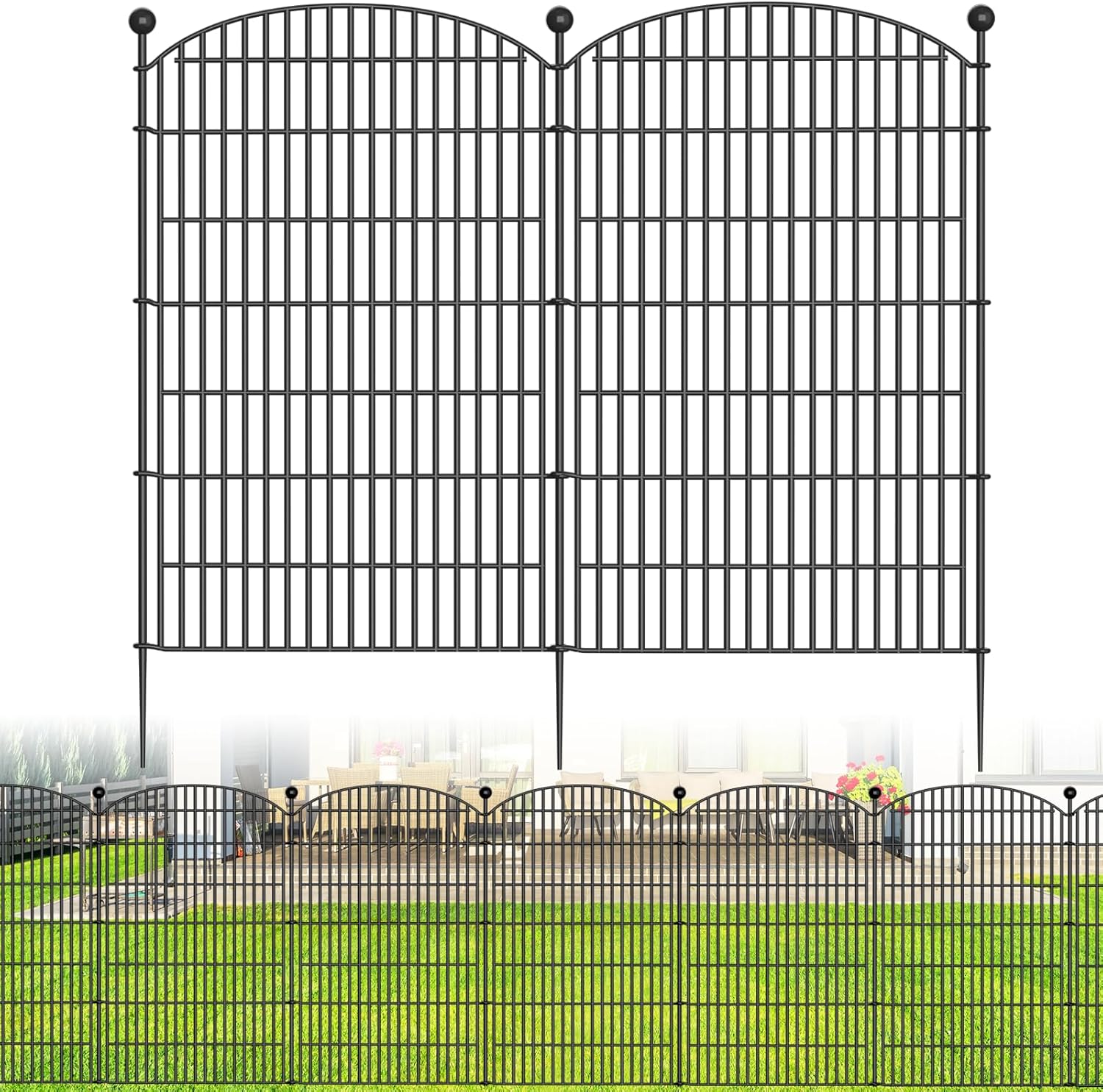 • 【Tall Garden Fence Animal Barrier】Each panel measures 48" H x 31.3" W with a 1.57-inch gap, and a set of 16 panels connects to 41.6 feet in length, these tall garden fences provide superior protection for your yard, patio, or garden. The sturdy metal construction ensures durability, while the arched design adds a decorative touch to your outdoor space.