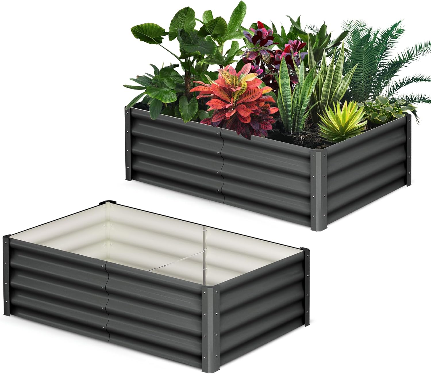 • UPGRADED QUALITY AND CONSTRUCTION: This outdoor raised garden bed is made of durable galvanized metal with double anti-corrosion protection. The rectangular structure design is beautiful and elegant, and the interface can withstand high pressure to ensure that it will not loosen in the long term