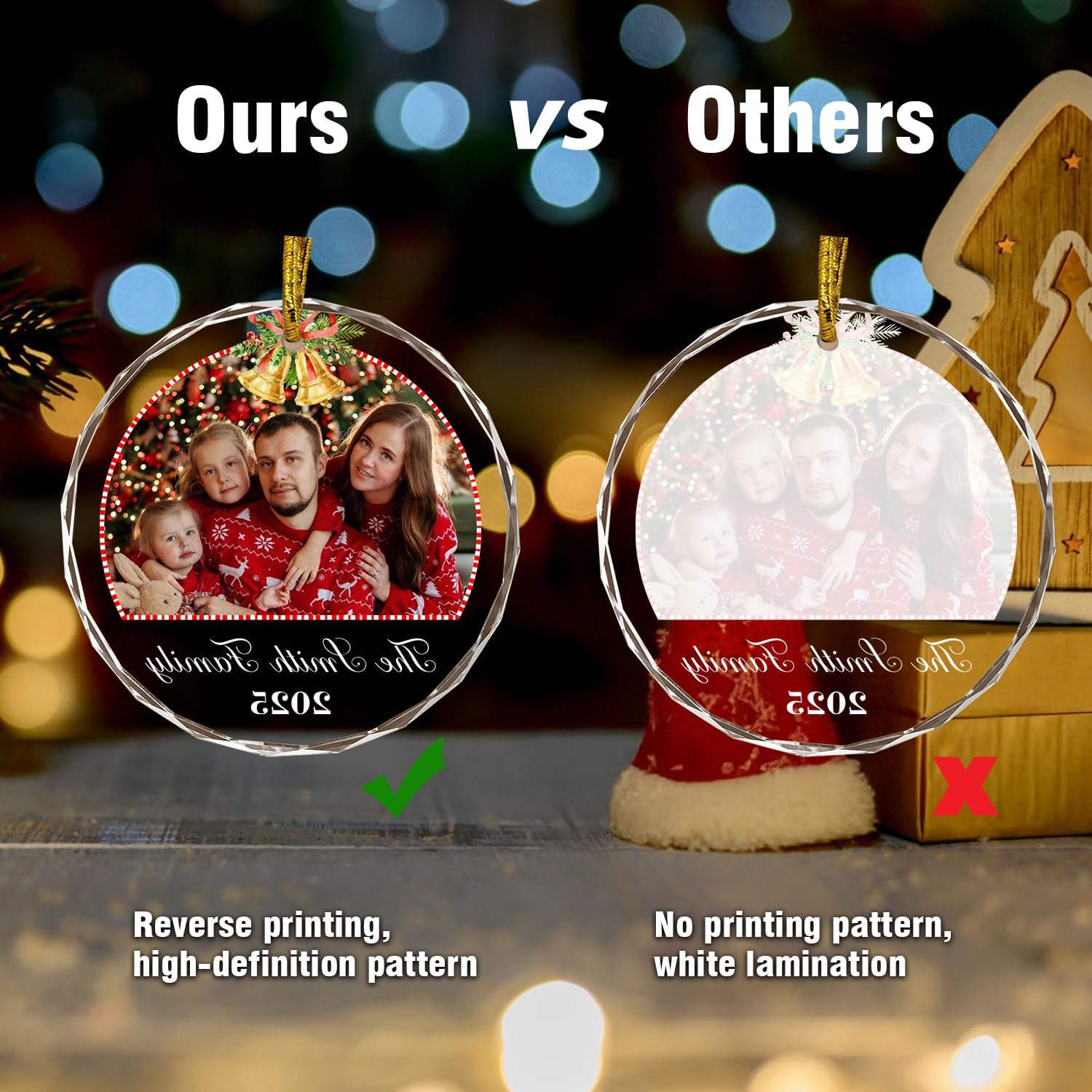 • 🎄Unique Double-sided Printing --- Ordinary crystal pendants are printed on one side, with only one side having your customized photo and text. Our crystal pendants are printed on both sides, with patterns and text no matter which side you look at them from.
