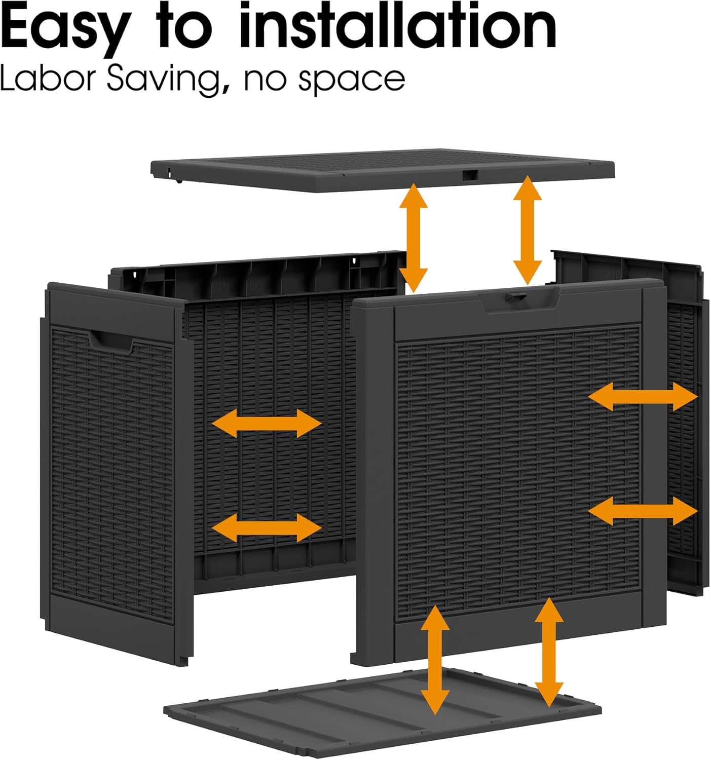 • Stylish design: Featuring a modern pattern design, this all-weather resin deck box adds a touch of elegance to your patio, garden, porch, or poolside. It serves as both a practical storage solution and a beautiful decorative piece.