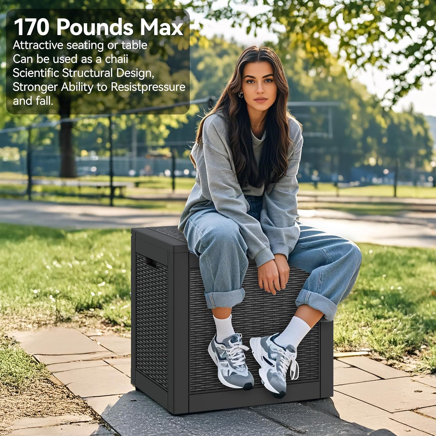 • Deck Boxes Outdoor Waterproof: Designed as a waterproof storage solution, this deck box protects your belongings from moisture and ensures they stay dry even during heavy rain. The lockable lid adds an extra layer of security, keeping your valuables safe from theft or damage.