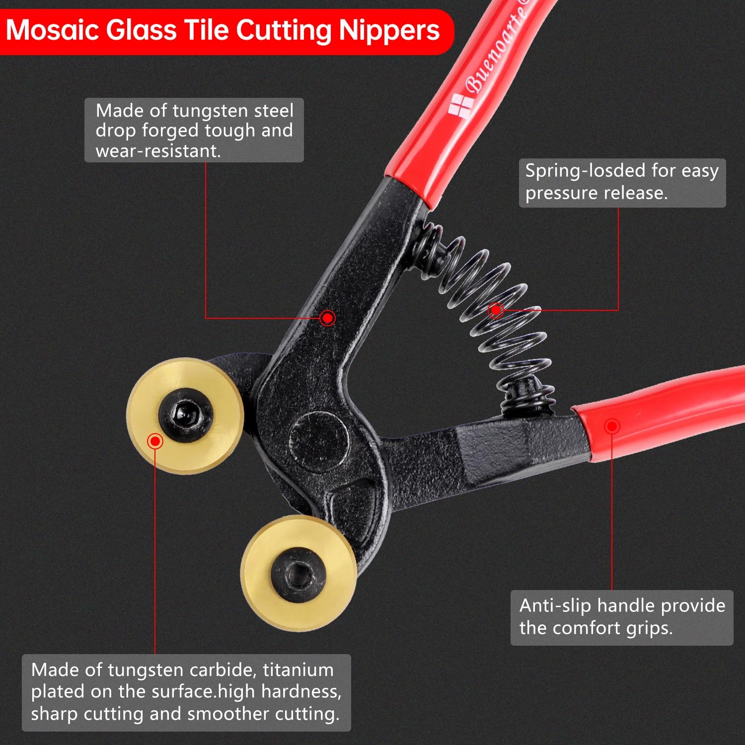 • Wide Applications:Glass Tile Nippers, Use on glass tile: two opposed, carbide scoring wheels easily score and cut glass tile, ideal for trim work on flooring, walls, mosaics and more. Can be perfectly used for cutting glass, tile, ceramic and various other materials.