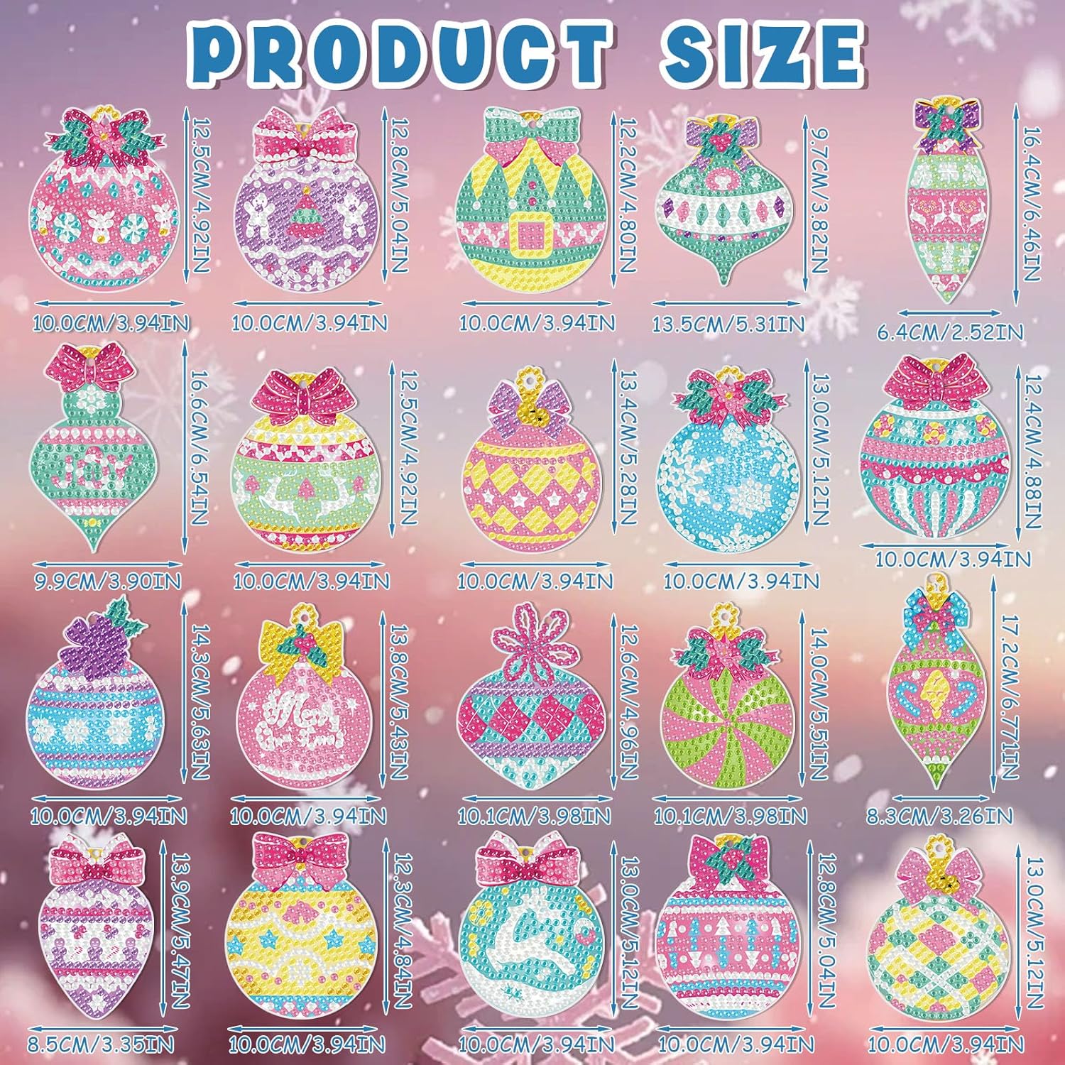 Tondiamo 20 Pcs Christmas Diamond Painting Keychain Kits 5D DIY Diamond Art Pendants Double Sided Hanging Key Chains for Christmas Party Decoration DIY(Macaron)