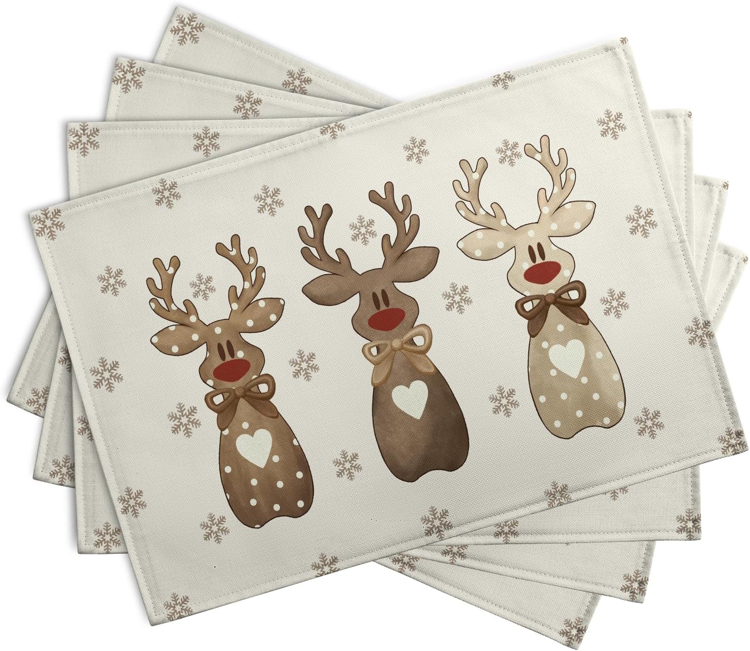 Christmas Reindeer Snowflakes Placemats Set of 4 Xmas Cute Elk Deer Place Mats 12x18 Seasonal Winter Holiday Farmhouse Linen Table Mats for Party Kitchen Dining Outdoor Indoor Decor