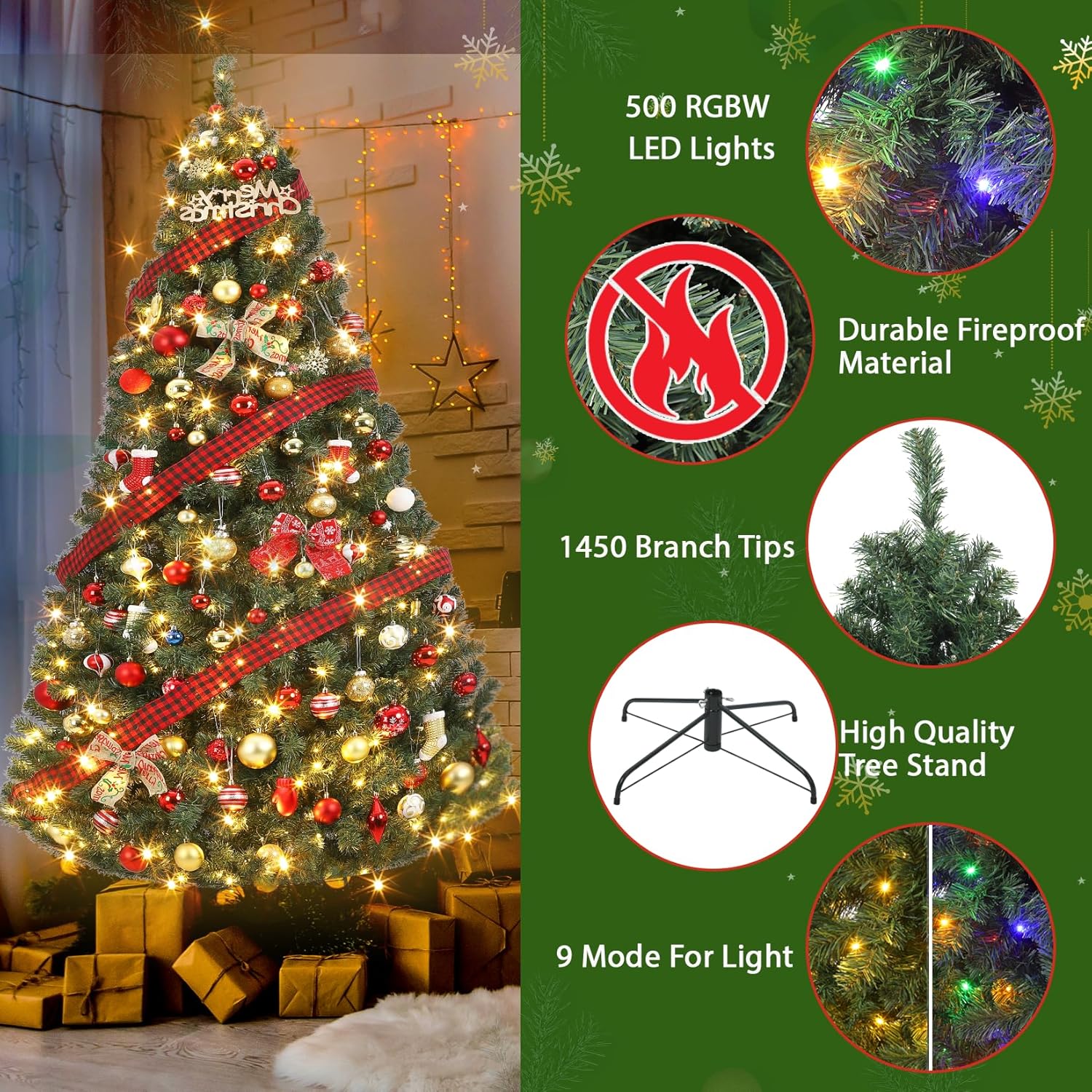 • PRE-LIT WITH 8 LIGHTING MODES & FOOT PEDAL CONTROL: Enjoy customizable holiday lighting with 600 energy-efficient LEDs offering both warm white (3000K) and multicolor options. Easily switch between 9 modes: Steady Multicolor, Flashing Multicolor, Slow Fade Multicolor, Steady Warm White, Flashing Warm White, Slow Fade Warm White, Flashing RGBW, and Slow Fade RGBW, Conbination.