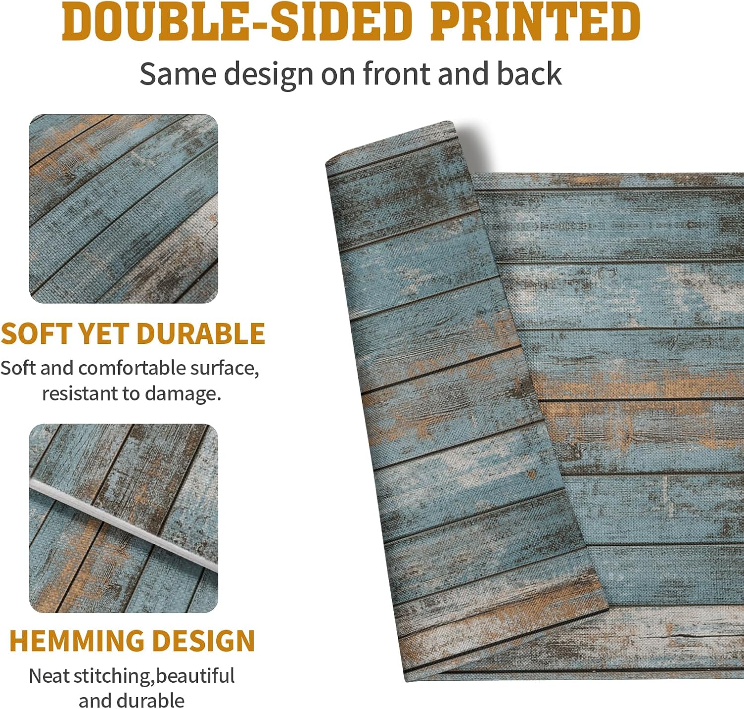• TABLE DECORATION: Rustic table placemats feature high-definition printing technology for crisp, clear patterns and vibrant colors; rectangle placemats with a wood grain texture pattern; unique and eye-catching seasonal patterns add charm to farmhouse table place mats, creating a Christmas atmosphere for your party