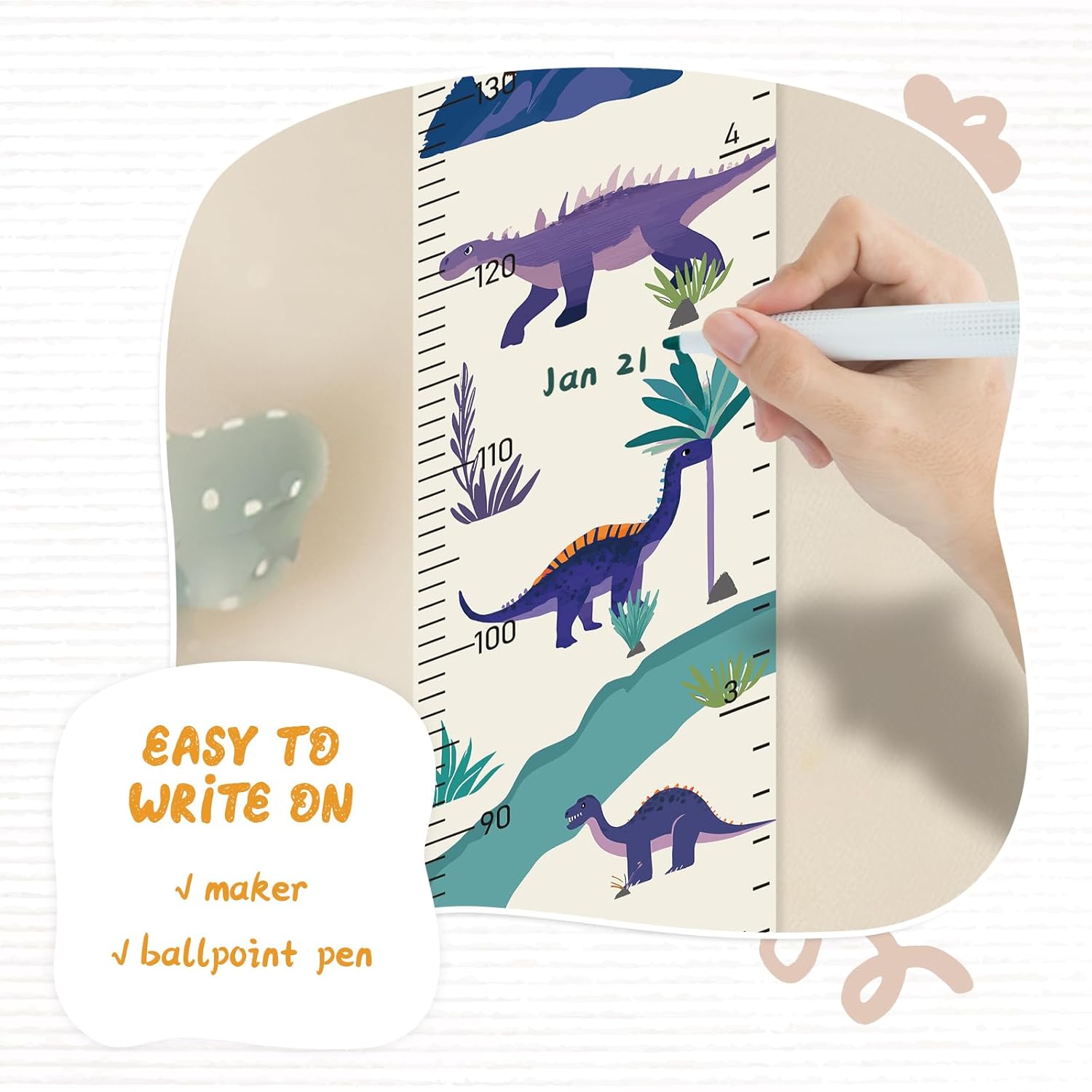 • Design: Kids growth chart with rope at the top of the chart, easy to install and removeable, foldable and portable design, easy to store, hang, roll up, transport, and save space. It boasts a material that's easy to write on, where you can use dark colored ballpoint pens and markers to track growth milestones.
