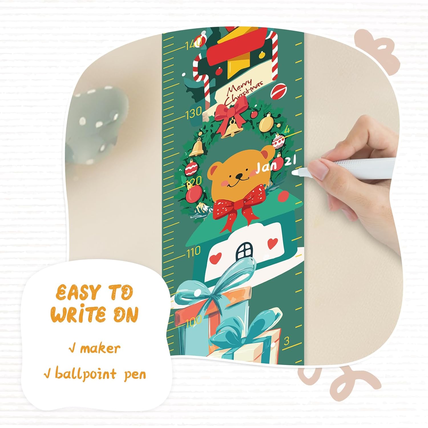 • Design: Kids growth chart with rope at the top of the chart, easy to install and removeable, foldable and portable design, easy to store, hang, roll up, transport, and save space. It boasts a material that's easy to write on, where you can use dark colored ballpoint pens and markers to track growth milestones.