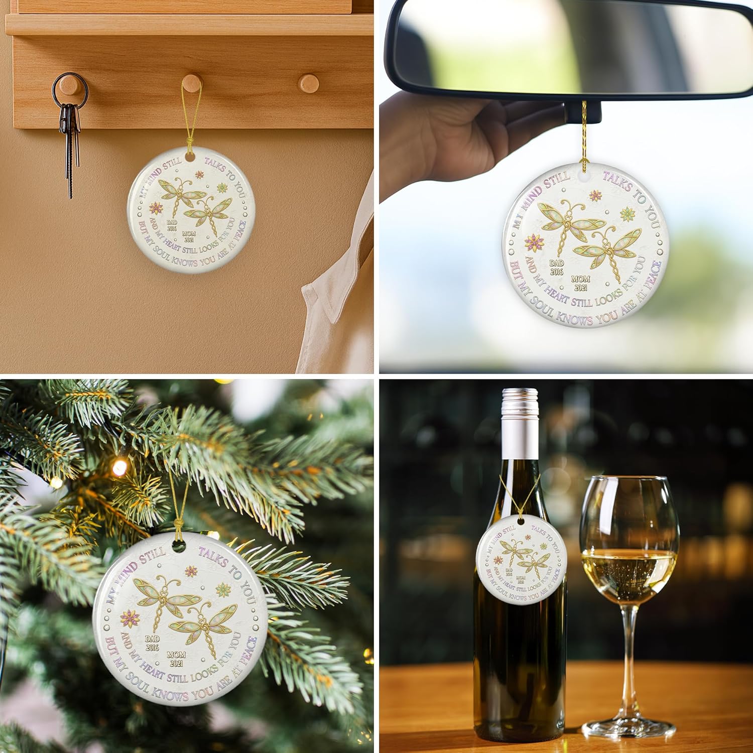 Memorial Ceramic Ornament Personalized Butterfly My Mind Still Talks to You - Custom Name Christmas Remembrance Ornament for Loss of Loved Ones Memory of Mom Dad in Heaven Sympathy Gift