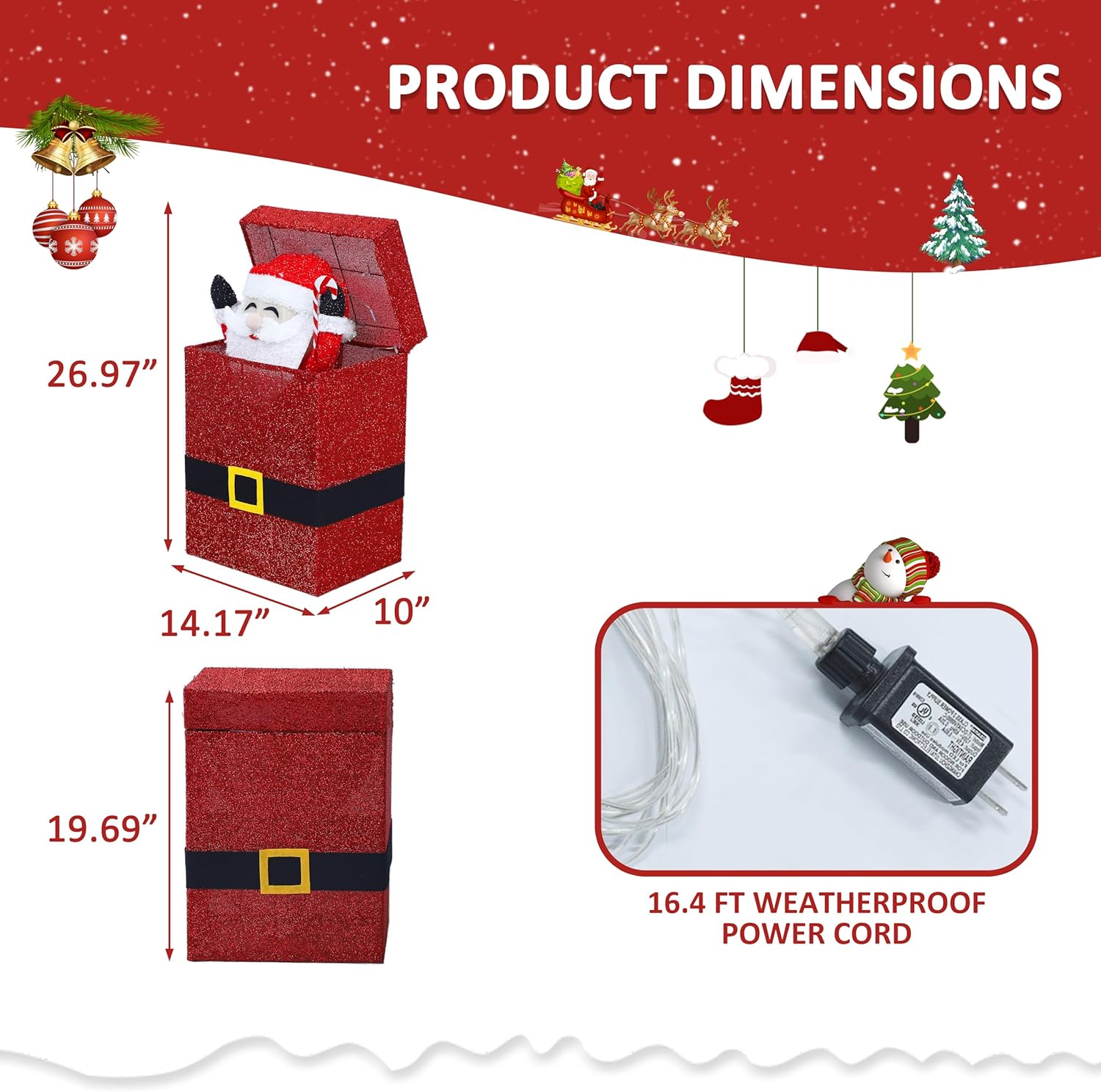 Light Up Electric Santa Claus Decor with 100 LED Lights, 3D Pre-Lit Animated Santa Claus for Xmas Decoration, 14.17" L x 10" W x 26.97" H Freestanding Glittered Display for Outdoor, Indoor