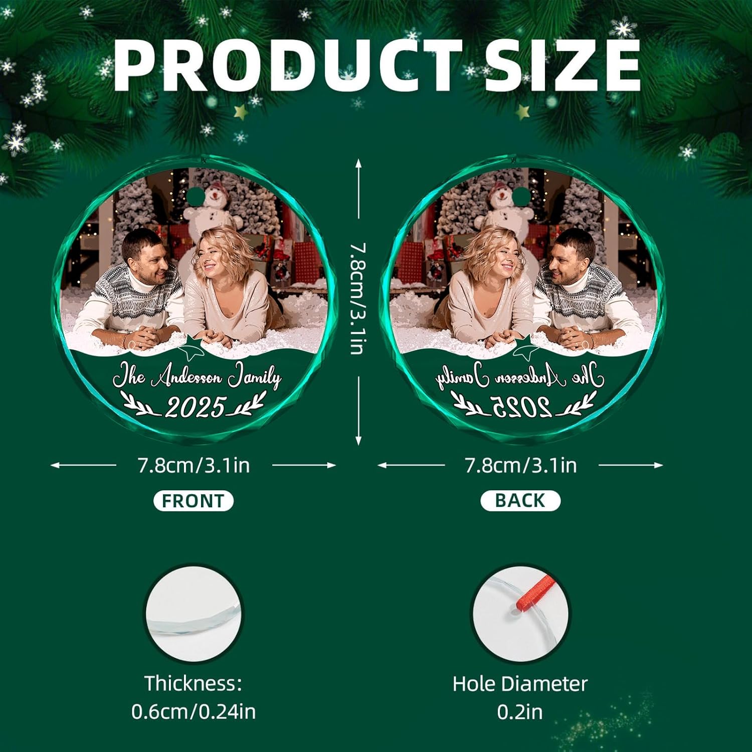 • High-Quality Personalized Christmas Ornaments --- Crafted from premium glass, these ornaments feature a smooth, glossy finish and a durable structure. They are resistant to cracking and designed to last for years. The elegant design enhances texture while preventing fading or peeling.