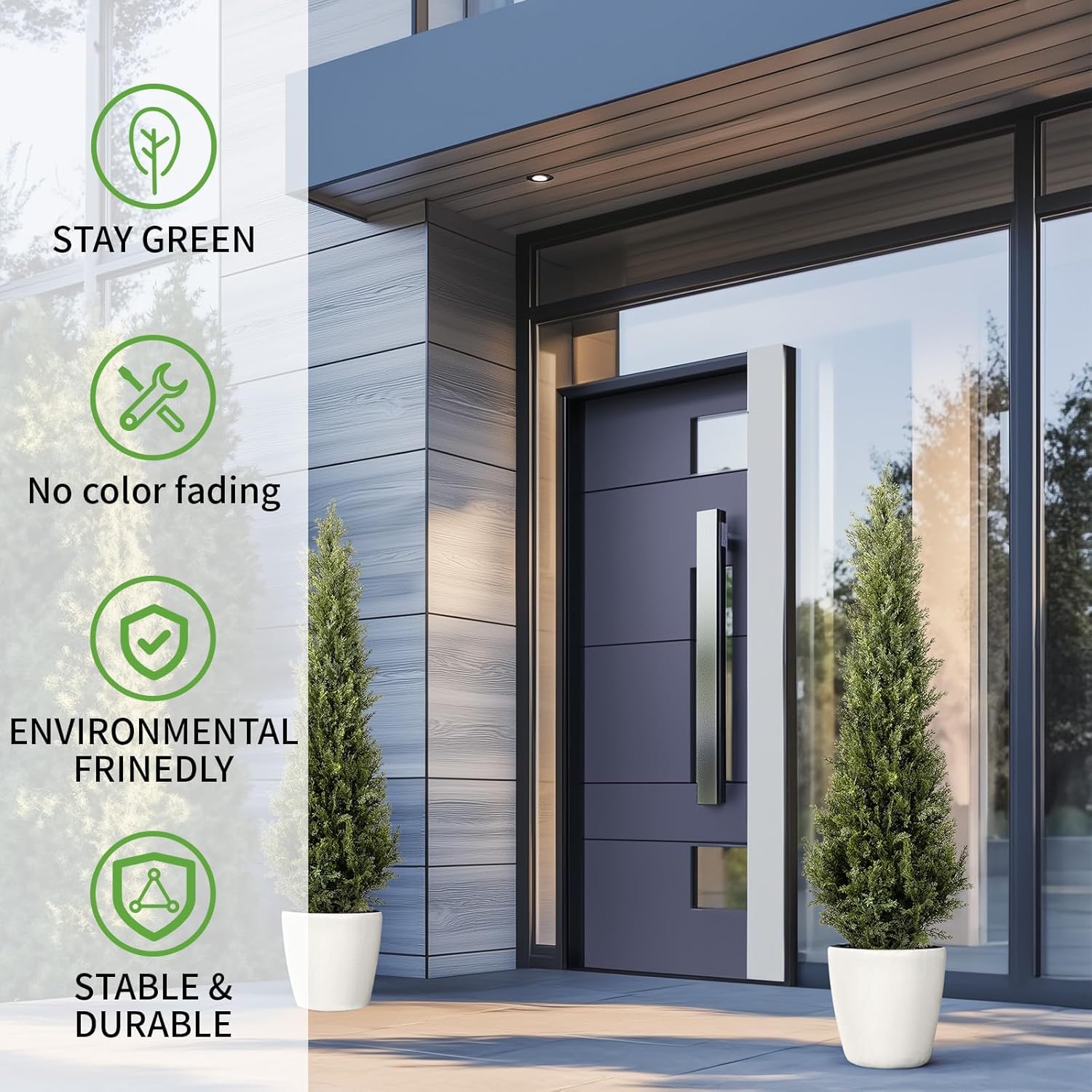 • 【No Assembly Required】These faux cypress trees no assembly required, just a little shape and fluff each branches after unboxing. We poured cement in the bottom of the pot, the pot is heavy enough to remain upright outside even with moderate winds or a storm. And it can be used year round and can be dressed up seasonally.