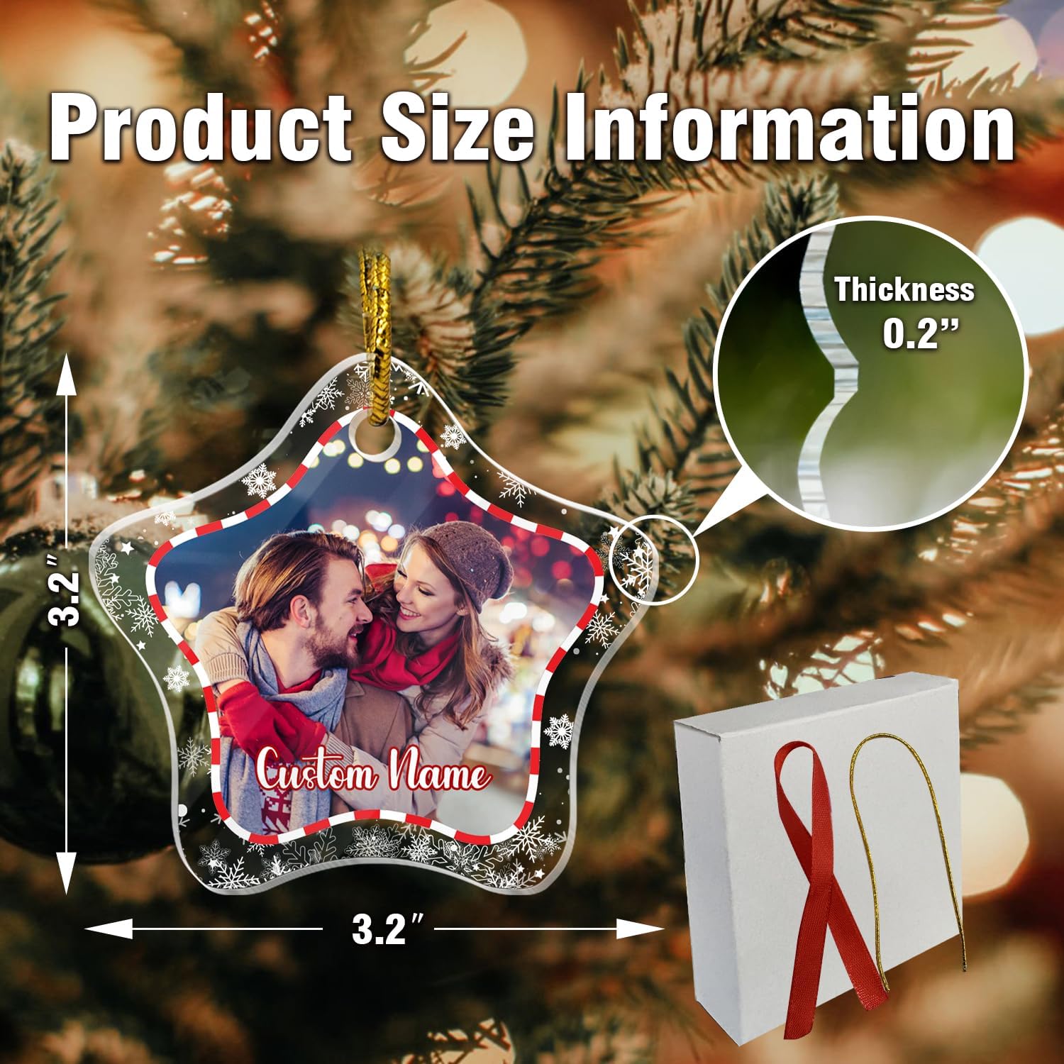 Personalized Christmas Ornaments, Crystal Custom Hanging Ornaments, Decorative Photo Hanging Glass Pendant, Design Own Picture, Gifts for Christmas, Star Shape for Family/Friends