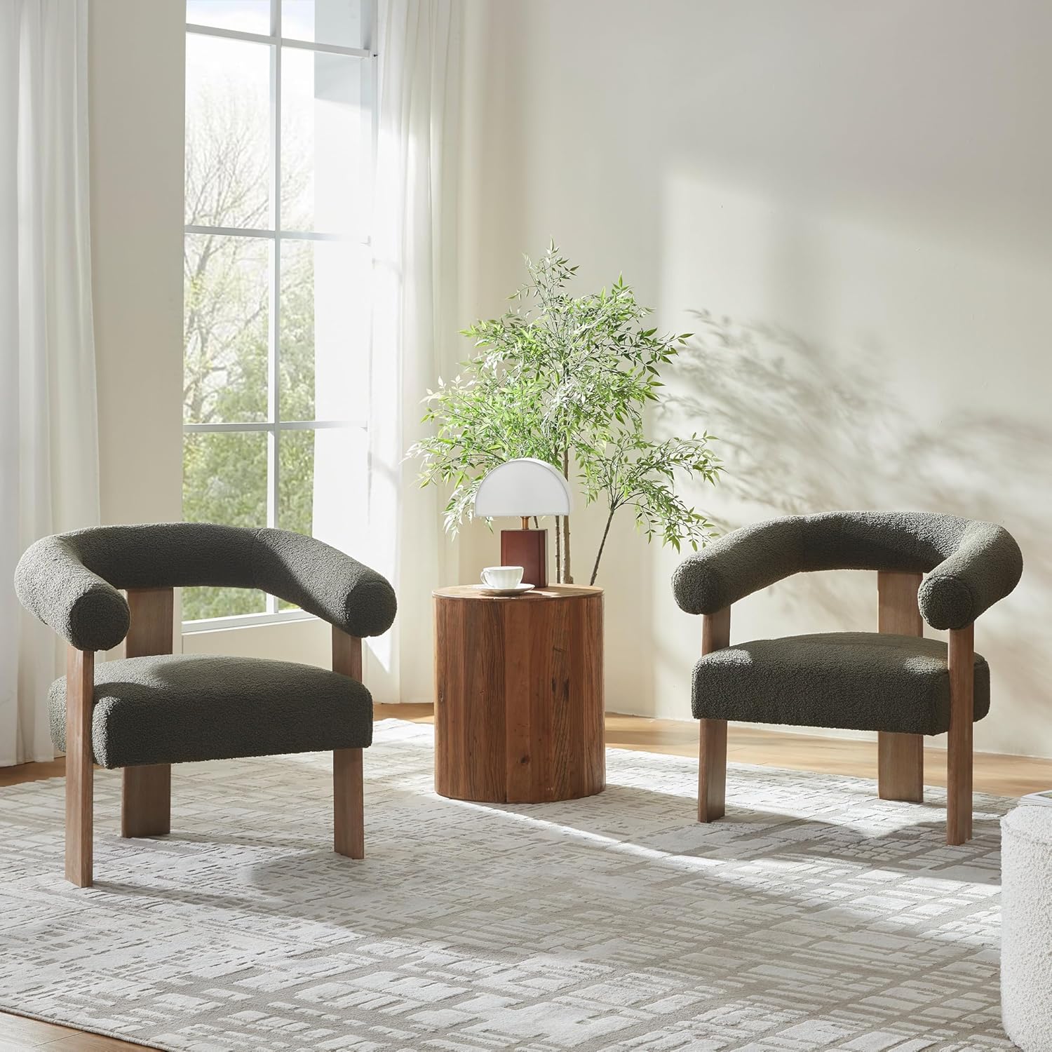 VKNOW Accent Chairs Living Room Chairs, Modern Upholstered Armchair with Solid Wood Legs, Comfy Barrel Arm Chairs for Living Room Office, Sage Green