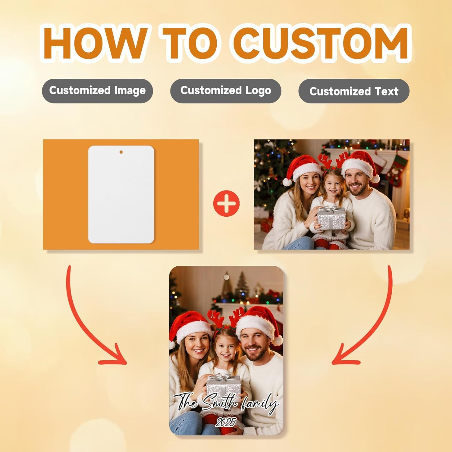 • 【CUSTOMIZED CHRISTMAS ORNAMENT 2025】Click "Customize Now" to start personalize your own fragrance ornament special with desired photo, words, text, logo, image, saying, number, name etc. You can customize several ornaments to send to all your loved ones. Imagine how surprised they will be when they receive the personalized gifts