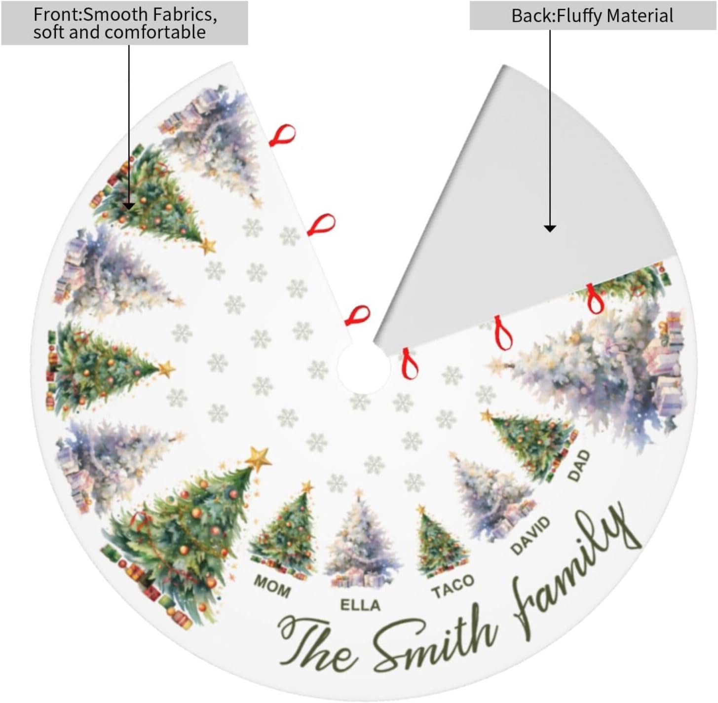 Custom Family Tree Christmas Tree Skirt with Name, Personalized Holiday Xmas Tree Decor Gifts for Party Home, 30" - 48"