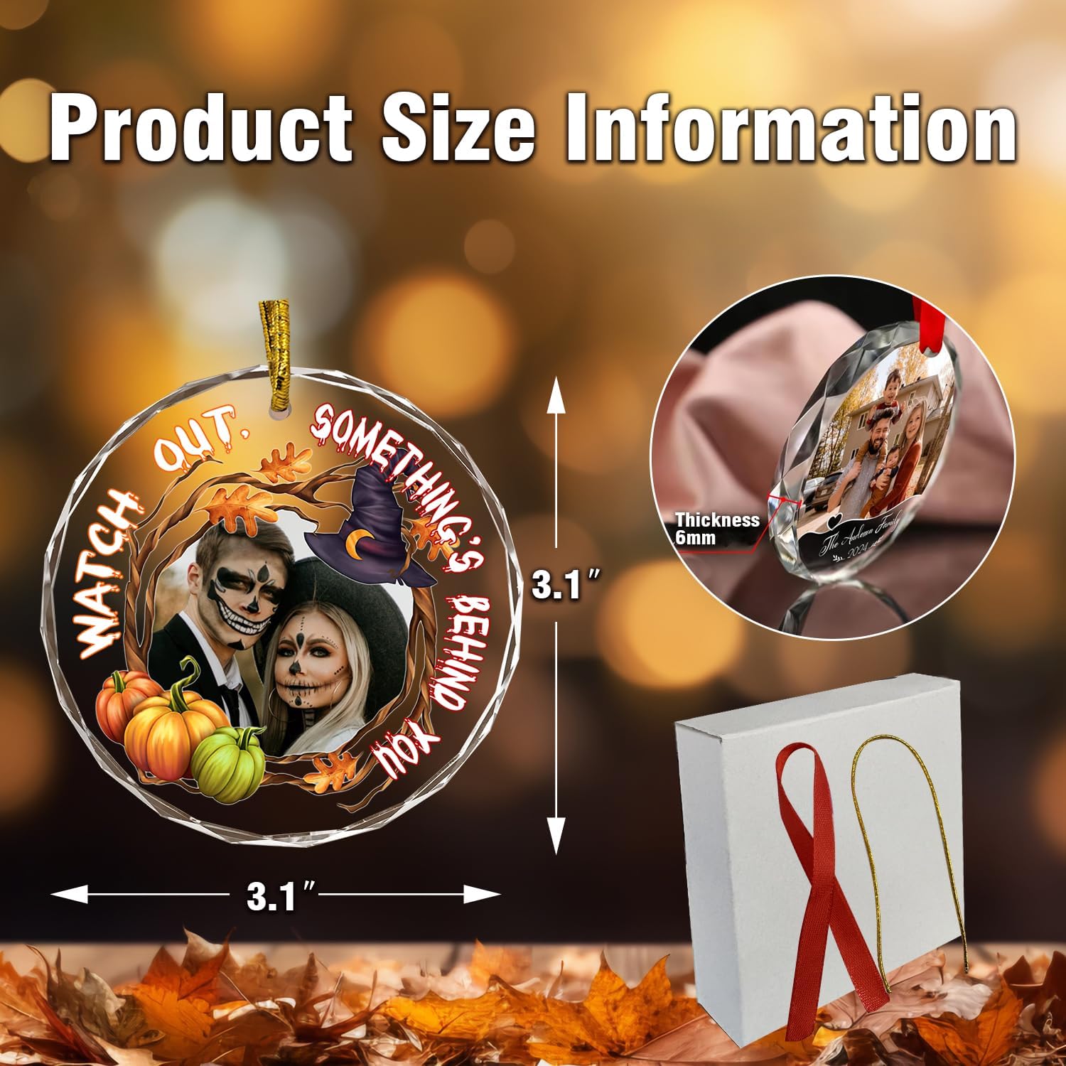 Custom Crystal Ornament, Personalized Halloween Couples/Family Photo Ornament, Halloween Spooky Glass Hanging Decor, Spooky Pendent, Ghost and Pumpkin Hanging Gifts