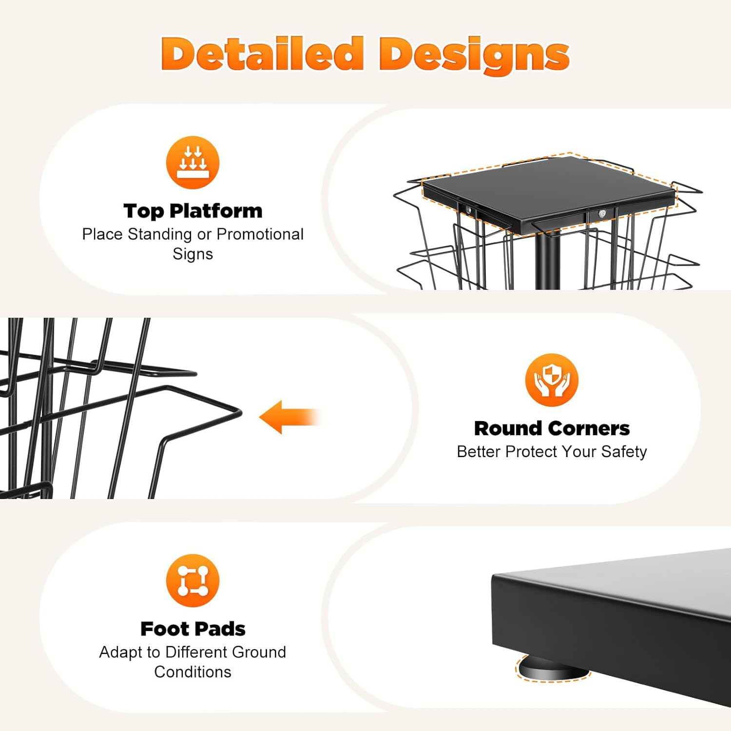 • 【Modern & Minimalist Design】The clean black lines and functional design blend into modern interiors, from retail stores and libraries to offices and exhibition halls. This rotating magazine rack not only organizes your materials effectively but also enhances the visual appeal of your space