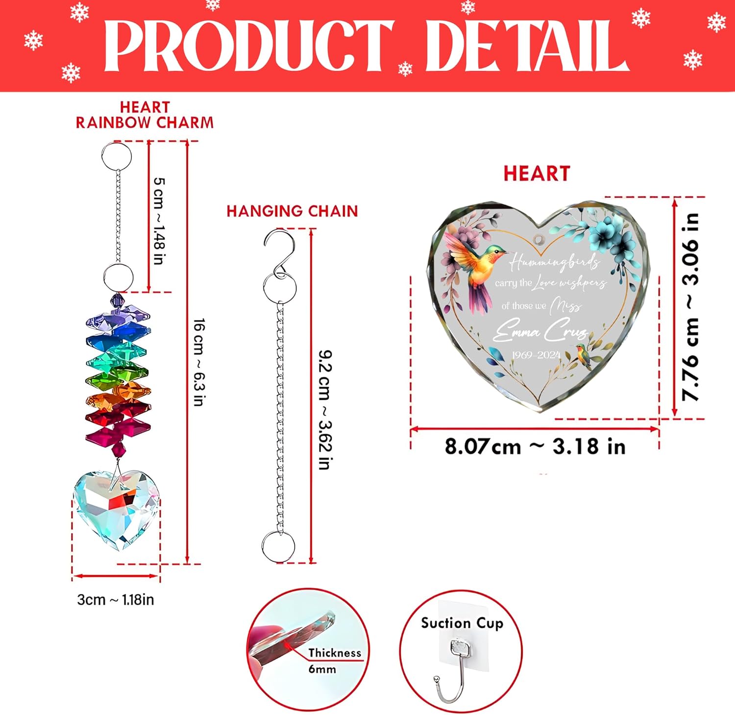 • This Personalized Memorial Hummingbird Ornament features the loving phrase, “Hummingbirds carry the love whispers of those we miss,” with a colorful hummingbird and flowers design. Customizable with your loved one’s name and the years of their life, it’s a meaningful tribute to remember and celebrate their legacy.