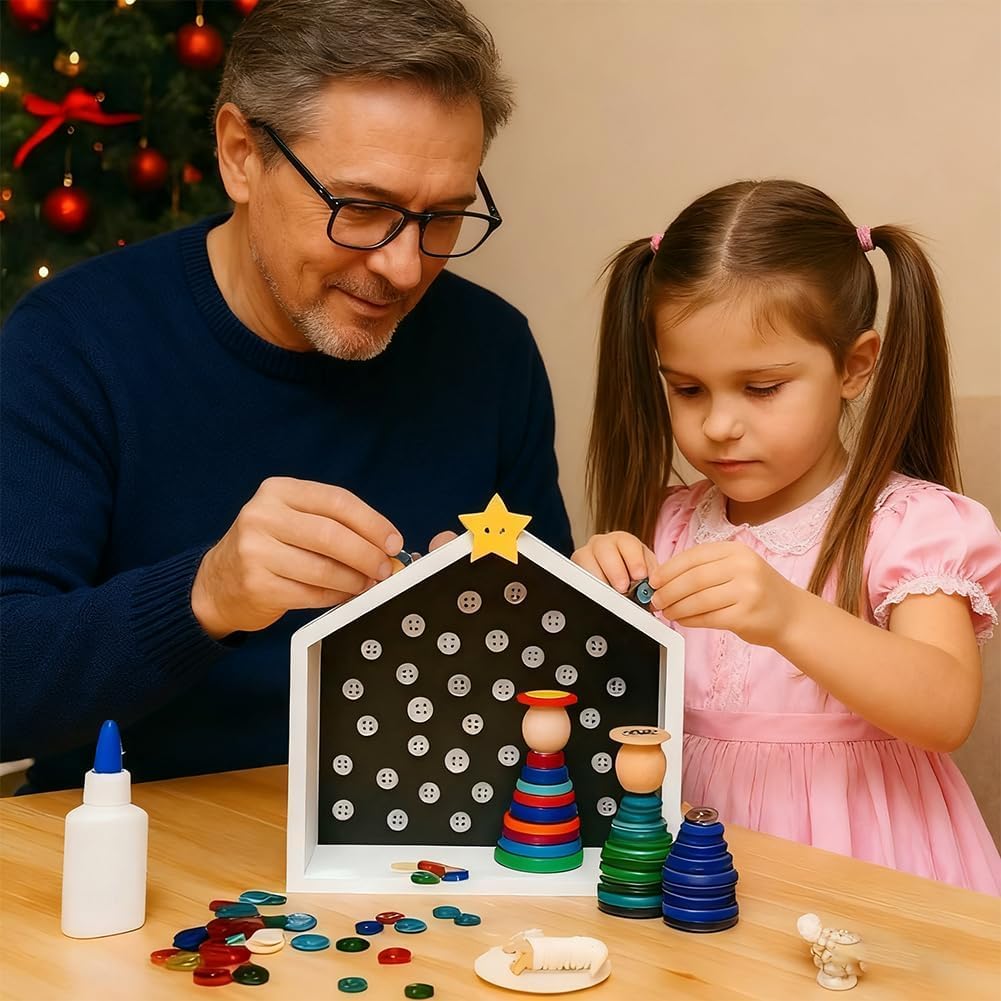 • Fun DIY Christmas Buttons Decorations:This Christmas button craft kit is a fun holiday craft for both kids and adults. It's easy and mess-free, allowing you to easily create your own Christmas tree and snowman decorations.